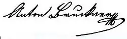 Prelate Michael Arneth noticed Bruckner's bad situation in Windhaag and awarded him an assistant teacher position in the vicinity of the monastic town of Sankt Florian, sending him to Kronstorf an der Enns for two years. Here he would be able to have more of a part in musical activity. The time in Kronstorf was a much happier one for Bruckner. Between 1843 and 1845, Bruckner was the pupil of Leopold von Zenetti in Enns.[13] Compared to the few works he wrote in Windhaag, the Kronstorf compositions from 1843 to 1845 show a significantly improved artistic ability, and finally the beginnings of what could be called "the Bruckner style".[14] Among the Kronstorf works is the vocal piece Asperges me (WAB 4), which the young assistant teacher, out of line given his position, signed with "Anton Bruckner m.p.ria. Comp[onist]". This has been interpreted as a lone early sign of Bruckner's artistic ambitions. Otherwise, little is known of Bruckner's life plans and intentions.[15]