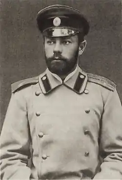 Denikin served as chief of staff for several brigades and divisions. He distinguished himself for personal bravery and his ability to make quick assessments of combat situations. In November 1904, in the battle of Tsinkhechen, he led a successful bayonet counterattack, for which a hill was named "Denikin's sopka" in his honour.[12] He was promoted to lieutenant colonel and then to colonel. He also served with the mounted detachment of General Pavel Mishchenko and took part in a successful raid on the enemy's rearguard positions in May 1905, which raised the morale of the Russian army.[13]