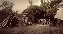 The Apaches' nomadic way of life complicates accurate dating, primarily because they constructed less substantial dwellings than other Southwestern groups.[36] Since the early 21st century, substantial progress has been made in dating and distinguishing their dwellings and other forms of material culture.[37] They left behind a more austere set of tools and material goods than other Southwestern cultures.