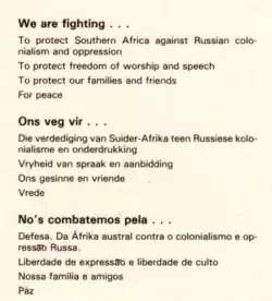 - ^ Roherty, James Michael (1992). State security in South Africa: civil-military relations under P.W. Botha. M.E. Sharpe. p. 23. ISBN 978-0-87332-877-7.