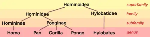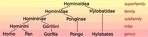 See below, History of hominoid taxonomy, for a discussion of changes in scientific classification and terminology regarding hominoids.