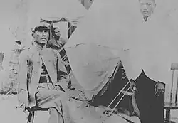 On December 10, 1899, he was captured by Americans at Cuyapo, Nueva Ecija.[14] He was captured by troopers of the 4th Cavalry Regiment.[15] He was imprisoned after his capture,[16] though he was in bad health, and was exiled to the island of Guam for refusing to take the oath of allegiance to the United States[17] along with other revolutionists Americans referred to as insurrectos (rebels) or Irreconcilables.