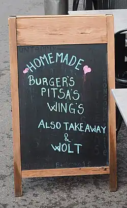 Where a business name is based on a family name it should in theory take an apostrophe, but many leave it out (contrast Sainsbury's with Harrods). In recent times there has been an increasing tendency to drop the apostrophe. Names based on a first name are more likely to take an apostrophe, but this is not always the case. Some business names may inadvertently spell a different name if the name with an ⟨s⟩ at the end is also a name, such as Parson. A small activist group called the Apostrophe Protection Society[57] has campaigned for large retailers such as Harrods, Currys, and Selfridges to reinstate their missing punctuation. A spokesperson for Barclays PLC stated, "It has just disappeared over the years. Barclays is no longer associated with the family name."[58] Further confusion can be caused by businesses whose names look as if they should be pronounced differently without an apostrophe, such as Paulos Circus, and other companies that leave the apostrophe out of their logos but include it in written text, such as Cadwalader's.