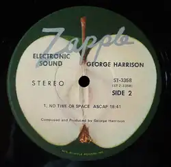 Zapple Records, an Apple Records subsidiary run by Barry Miles, a friend of McCartney, was intended as an outlet for the release of spoken word and avant-garde records, as a budget label in the style of a magazine or journal.[12] It was active only from 3 February 1969[13] until June 1969; a string of projects were announced, and a number of recording sessions undertaken, but only two albums were released on the label, both by solo Beatles, while another two LPs of finished material were issued by other labels after Zapple was closed down. The label was launched with the two Beatle-related records: Lennon and Ono's avant garde Unfinished Music No. 2: Life with the Lions (Zapple 1), and George Harrison's Electronic Sound (Zapple 2). An album of readings by Richard Brautigan was recorded and mixed for release as Zapple 3, and acetate disc copies and test pressings were cut, but, said Miles, "The Zapple label was folded by [Allen] Klein before the record could be released. The first two Zapple records did come out. We just didn't have [Brautigan's record] ready in time before Klein closed it down. None of the Beatles ever heard it."[14] Brautigan's record was eventually released as Listening to Richard Brautigan on Harvest Records, a subsidiary of Apple distributor EMI, in the US only.