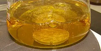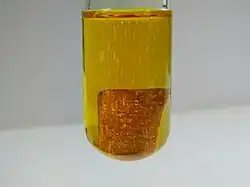 | Appearance | Fuming liquid. Freshly prepared aqua regia is colourless, but it turns yellow, orange or red within seconds. |