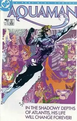 Aquaman's first Post-Crisis appearance was in the four-issue miniseries Aquaman (vol. 2) in 1986, which gave the character a new blue costume which did not reappear in any later series. This blue "camouflage" suit, however, was used as inspiration for one of the main suits in the Aquaman film sequel Aquaman and the Lost Kingdom in 2023. In 1988, Aquaman starred in the one-shot Aquaman #1, followed by the Legend of Aquaman Special one-shot issue in 1989. This was followed by the five-issue miniseries Aquaman (vol. 3). A new ongoing series, Aquaman (vol. 4), began in 1991, but was cancelled after 13 issues.
