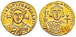 The Saracen Wars of Justinian II (r. 685–695 and 705–711), last emperor of the Heraclian Dynasty, "reflected the general chaos of the age".[51] After a successful campaign he made a truce with the Arabs, agreeing on joint possession of Armenia, Iberia and Cyprus; however, by removing 12,000 Christian Mardaites from their native Lebanon, he removed a major obstacle for the Arabs in Syria, and in 692, after the disastrous Battle of Sebastopolis, the Muslims invaded and conquered all of Armenia.[52] Deposed in 695, with Carthage lost in 698, Justinian returned to power from 705 to 711.[51] His second reign was marked by Arab victories in Asia Minor and civil unrest.[52] Reportedly, he ordered his guards to execute the only unit that had not deserted him after one battle, to prevent their desertion in the next.[51]