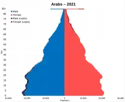 According to the Israel Central Bureau of Statistics, the Israeli Arab population stood at 2.1 million people in 2023, accounting for 21% of Israel's total population.[1] The majority of these Arab citizens identify themselves as Arab or Palestinian by nationality and as Israeli by citizenship.[14][15][16] They mostly live in Arab-majority towns and cities, some of which are among the poorest in the country, and generally attend schools that are separated to some degree from those attended by Jewish Israelis.[17] Arab political parties traditionally did not join governing coalitions until 2021, when the United Arab List became the first to do so.[18] The Druze and the Bedouin in the Negev and the Galilee have historically expressed the strongest non-Jewish affinity to Israel and are more likely to identify as Israelis than other Arab citizens.[19][20][21][22]