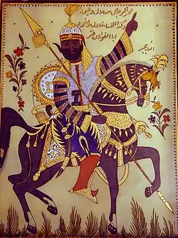 Notable poets of the pre-Islamic period were Abu Layla al-Muhalhel and Al-Shanfara.[5] There were also the poets of the Mu'allaqat, or "the suspended ones", a group of poems said to have been on display in Mecca.[5] These poets are Imru' al-Qais, Tarafah ibn al-‘Abd, 'Abid ibn al-Abras, Harith ibn Hilliza, Amr ibn Kulthum, Zuhayr ibn Abi Sulma, Al-Nabigha al-Dhubiyānī, Antara Ibn Shaddad, al-A'sha al-Akbar, and Labīd ibn Rabī'ah.[5]