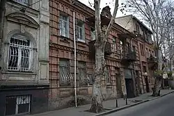 Aram Khachaturian was born on 6 June (24 May in Old Style)[14] 1903 in the city of Tiflis (present-day Tbilisi, Georgia) into an Armenian family.[15][16] Some sources indicate Kojori, a village near Tiflis, as his birthplace.[17][18][19] Khachaturian himself said he was born in Kojori.[C] His father, Yeghia (Ilya), was born in the village of Upper Aza near Ordubad in Nakhichevan (present-day Nakhchivan Autonomous Republic, Azerbaijan) and moved to Tiflis at the age of 13; he owned a bookbinding shop by the age of 25. His mother, Kumash Sarkisovna, was from Lower Aza, also a village near Ordubad. Khachaturian's parents were betrothed before knowing each other, when Kumash was 9 and Yeghia was 19. They had five children, one daughter and four sons, of whom Aram was the youngest.[21] From 1906 to 1922, Khachaturian lived at 93 Uznadze Street in Tbilisi.[a] Khachaturian received primary education at the commercial school of Tiflis, a school for merchants.[26] He considered a career either in medicine or engineering.[27]