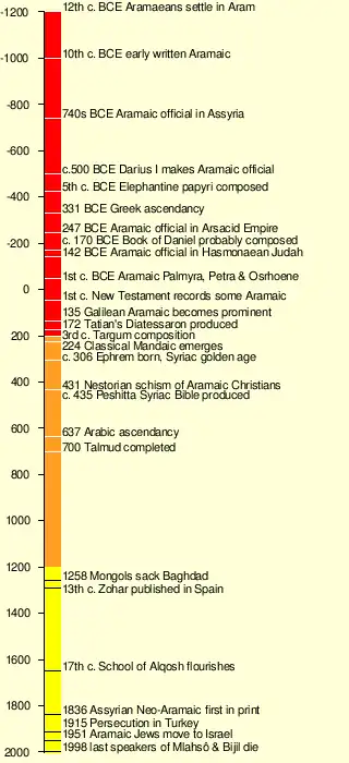 • Neo-Aramaic, from c. 1200 AD, up to the modern times