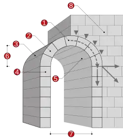 A typical true masonry arch consists of the following elements:[10][11][12]