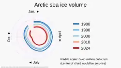 - ^ "PIOMAS Data / PIOMAS Ice Volume Data, 1979-present". Polar Science Center, University of Washington. April 2025. Archived from the original on 21 April 2025.