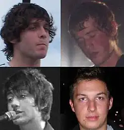 Arctic Monkeys are an English rock band formed in Sheffield in 2002. They comprise lead singer and guitarist Alex Turner, drummer Matt Helders, guitarist Jamie Cook and bassist Nick O'Malley. The co-founder and original bassist Andy Nicholson left in 2006. Though initially associated with the short-lived landfill indie movement,[2] Arctic Monkeys were one of the earliest bands to come to public attention via the Internet, during the emerging "blog rock"[3] era. Commentators have suggested that this period marked a shift in how new bands were promoted and marketed.[4]