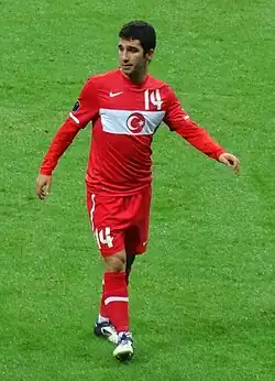 Turan featured in nine of Turkey's 12 qualification matches for Euro 2008, and starred in the finals of the tournament itself. Turan scored two goals during Turkey's progression to the semi-finals. The first was a last-minute winner against co-hosts Switzerland in their second group stage match to eliminate them from the competition.[41] His second came in the final group stage match against the Czech Republic, in which a draw would see a penalty shootout being played to determine who would go through to the quarter-finals because both teams had identical records. He scored Turkey's first goal in the second half, beating goalkeeper Petr Čech with a low shot, which led to Turkey coming from 2–0 down to win the match.[42] He also successfully converted a spot-kick in the penalty shootout against Croatia in the quarter-finals,[43] taking Turkey to the semi-finals, where they were eventually knocked out by losing finalists Germany.