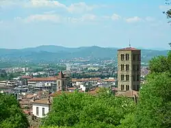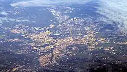 Arezzo is set on a steep hill, rising from the floodplain of the River Arno. In the upper part of the town are the cathedral, the town hall and the Medici Fortress (Fortezza Medicea), from which the main streets branch off towards the lower part as far as the gates. The upper part of the town maintains its medieval appearance despite the addition of later structures. Arezzo's city proper is near the high risk areas for earthquakes, but located in a transitional area where the risk for severe earthquakes is much lower than in nearby Umbria and Abruzzo, albeit it is slightly more vulnerable than Florence.[12] Notable earthquakes are still a very rare phenomenon in the province, with a 4.6 quake 25 kilometres (16 mi) to its north-east that claimed no lives on 26 November 2001 the exception.[13]