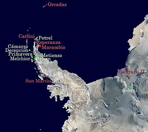 - ^ "Argentina convirtiendo la Base transitoria Petrel en Antártida en permanente". MercoPress (in Spanish). Retrieved 4 January 2024.