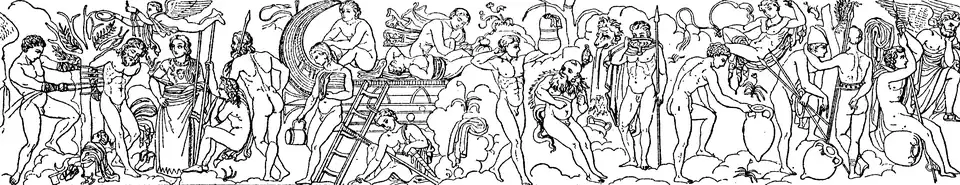 There is no definite list of the Argonauts. H. J. Rose explains this was because "an Argonautic ancestor was an addition to even the proudest of pedigrees."[2] The following list is collated from several lists given in ancient sources.[3][4][5][6][7]