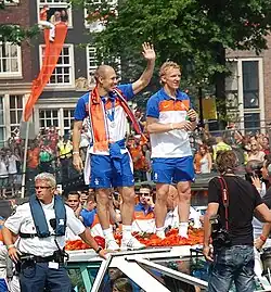 Robben's first participation at an international tournament came at UEFA Euro 2004 when manager Dick Advocaat called up younger players, such as Wesley Sneijder and John Heitinga. During the group stage of the tournament, Advocaat substituted Robben in the 66th minute to defend a 2–1 lead over the Czech Republic. The Czechs, however, then scored two goals and won 3–2, which led to criticism about Advocaat's decision.[125] In the quarter-finals, Robben scored the deciding kick in the penalty shootout between the Netherlands and Sweden, which ensured that at the fifth attempt, the Dutch finally won a shootout.[126]