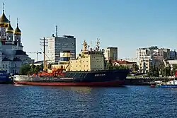 Arkhangelsk[a] (Russian: Архангельск, pronounced [ɐrˈxanɡʲɪlʲsk]) is a city and the administrative center of Arkhangelsk Oblast, Russia. It lies on both banks of the Northern Dvina near its mouth into the White Sea. The city spreads for over 40 kilometres (25 mi) along the banks of the river and numerous islands of its delta. Arkhangelsk was the chief seaport of medieval and early modern Russia until 1703, when it was replaced by the newly founded Saint Petersburg.