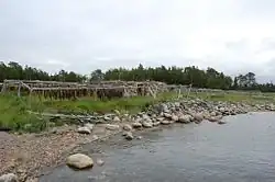 The main waterway was the Northern Dvina, and Novgorod merchants used the Volga and its tributary, the Sheksna, along the Slavyanka River into Lake Nikolskoye, then the boats were taken by land to Lake Blagoveshchenskoye, from there downstream along the Porozovitsa River into Lake Kubenskoye and further to the Sukhona and the Northern Dvina.[16] Portages from the Northern Dvina Basin led further to the Mezen and the Pechora.