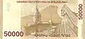 ֏50,000 | 160 x 79 mm | Brown and red | Etchmiadzin Cathedral | St. Gregory the Illuminator and king Tiridates the Great holding a symbol representing the Armenian Church; on the right, a khachkar from Kecharis Monastery. | ||
