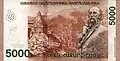 ֏5,000 | 143 x 72 mm | Yellow and green | Hovhannes Tumanyan (1869–1923) | Nature scene from Lori, from one of Martiros Saryan's paintings | ||