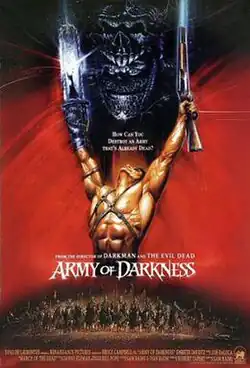 Army of Darkness[a] is a 1992 American dark fantasy comedy film directed, co-written, and co-edited by Sam Raimi.[3][4] The film is the third installment in the Evil Dead film series and the sequel to Evil Dead II (1987). Starring Bruce Campbell and Embeth Davidtz, it follows Ash Williams (Campbell) as he is trapped in the Middle Ages and battles the undead in his quest to return to the present.
