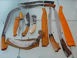The Philippines has what is known as a blade culture.[51][52] Unlike in the West where Medieval and Renaissance combative and self-defense blade arts have gone almost extinct (having devolved into sport fencing with the advent of firearms),[53] blade fighting in the Philippines is a living art. Local folk in the Philippines are much more likely to carry knives than guns. They are commonly carried as tools by farmers, used by street vendors to prepare coconuts, pineapples, watermelons, other fruits and meats, and balisongs are cheap to procure in the streets as well as being easily concealed. In fact, in some areas in the countryside, carrying a farming knife like the itak or bolo was a sign that one was making a living because of the nature of work in those areas.[54] In the country of Palau, the local term for Filipino is chad ra oles, which literally means "people of the knife" because of Filipinos' reputation for carrying knives and using them in fights.[55]