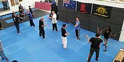 Kali stick seminar group at Ben Poon's Riseup Crossfit center, by Terry Lim, in Melbourne, Australia