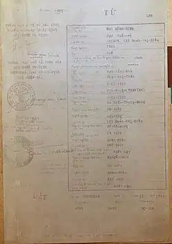 At around 16:00 on 2 November, the bodies of Diệm and Nhu were identified by the wife of former Cabinet minister Trần Trùng Dung.[40] The corpses were taken to St. Paul's Catholic Hospital, where a French doctor made a formal statement of death without conducting an autopsy. The original death certificate did not describe Diệm as Head of State but as "Chief of Province", a post he had held four decades earlier under the French colonial administration. Nhu was described as "Chief of Library Service", a post which he held in the 1940s.[41] This was interpreted as a Vietnamese way of expressing contempt for the two despised leaders. Their place of burial was never disclosed by the junta and rumours regarding it persist to the current day. The speculated burial places include a military prison, a local cemetery, the grounds of the JGS headquarters and there are reports of cremation as well.[41][42] Nobody was ever prosecuted for the killings.[43]