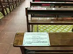 After Minh had ordered the rebels to search the areas known to have been frequented by the Ngô family, Colonel Phạm Ngọc Thảo was informed by a captured Presidential Guard officer that the brothers had escaped through the tunnels to a refuge in Cholon. Thảo was told by Khiêm, his superior, to locate Diệm and prevent him from being killed.[24] When Thảo arrived at Ma Tuyen's house, he phoned his superiors. Diệm and Nhu overheard him and Thơ drove them to the nearby St. Francis Xavier's Church (10°45′07″N 106°39′14″E / 10.752°N 106.654°E), which they had frequented over the years. Lieutenant Thơ died a few months later in a plane crash, but his diary was not found until 1970. Thơ recorded Diệm's words as they left the house of Ma Tuyen as being "I don't know whether I will live or die and I don't care, but tell Nguyễn Khánh that I have great affection for him and he should avenge me".[15] Soon after the early morning Mass was celebrated for All Souls' Day (the Catholic day of the dead) and after the congregation had left the building, the Ngô brothers walked through the shady courtyard and into the church wearing dark grey suits. It was speculated that they were recognised by an informant as they walked through the yard. Inside the church, the brothers prayed and received Communion.[25]