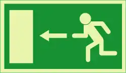 An arrow symbol indicating the direction towards an exit on an exit sign