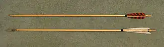 Traditional target arrow (top) and replica medieval arrow (bottom)