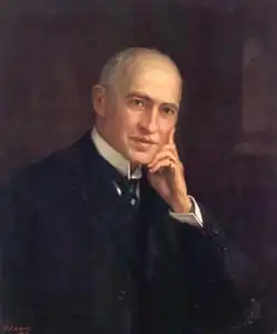 In 1907, Sifton was one member of a three-member commission assigned to investigate labour unrest between coal miners and mine operators.[10] His colleagues were mining executive Lewis Stockett and miners' union executive William Haysom.[10] Miners' demands included increased wages,[11] a reduction in working hours to eight per day (from ten), the posting of mine inspection reports, the isolated storage of explosives, the use of non-freezing explosives, and semi-monthly rather than monthly pay.[10] The mine operators objected to this last point on the basis that many miners did not report to work the day after payday, and it was thus desirable to keep paydays to a minimum.[10] The commission recommended that children under sixteen should not be allowed to work in mines, that inspectors should post their reports, that mine sites should have bath houses, and that ventilation inspection should be improved.[10] It also recommended that Albertans keep a supply of coal on hand during the summer for winter use.[10] The commission was silent on wages (except to say that these should not be fixed by legislation), the operation of company stores (a sore point among the miners), and the incorporation of mine unions (which was recommended by mines but opposed by the unions).[12] It made no recommendation about working hours, but Premier Alexander Rutherford's government legislated an eight-hour day anyway.[13]