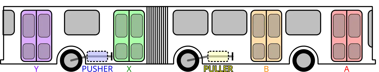 Articulated buses can be of "pusher" or "puller" configuration.[4] Very few companies specialise in manufacturing the articulated section for the buses. One that does is ATG Autotechnik GmbH in Siek near Hamburg.[30]