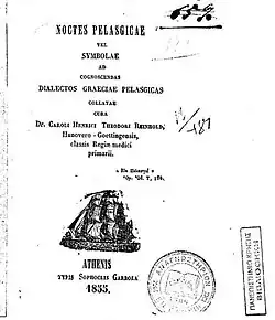 Noctes Pelasgicae, a collection of folk-songs, proverbs and lexical materials in Arbërishte, published by Karl Th. H. Reinhold.