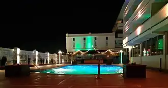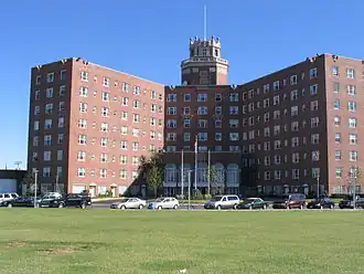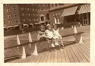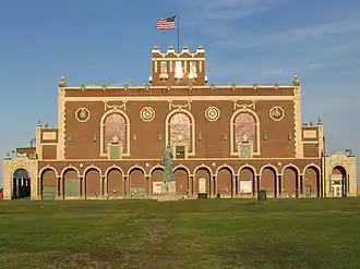 Bradley was active in the development of much of the city's infrastructure, and despite his preference for gas light, he allowed the Atlantic Coast Electric Company (precursor to today's Jersey Central Power & Light) to offer electric service.[35] Along the waterfront, Bradley installed the Asbury Park Boardwalk, an orchestra pavilion, public changing rooms, and a pier at the south end of that boardwalk. Such success attracted other businessmen. In 1888, Ernest Schnitzler built the Palace Merry-Go-Round on the southwest corner of Lake Avenue and Kingsley Street, the cornerstone of what would become the Palace Amusements complex; other attractions followed.[36] During these early decades in Asbury Park, a number of grand hotels were built, including the Plaza Hotel.[37]