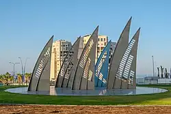The modern city of Ashdod city was built outside the historic settlement site in Rimal Isdud.[41] The development followed a main development plan.[42] The planners divided the city into seventeen neighborhoods of ten to fifteen thousand people. Wide avenues between the neighborhoods make traffic flow relatively freely inside the city. Each neighborhood has access to its own commercial center, urban park, and health and education infrastructure. The original plan also called for a business and administrative center, built in the mid-1990s, when the city population grew rapidly more than doubling in ten years.[25]