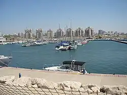 Modern Ashdod was established in 1956 on the sand hills 6 kilometers northwest of the ancient city of Ashdod, known in modern times by its Arabic name Isdud.[2] Isdud had been depopulated during the 1948 Arab–Israeli War, having had a history spanning approximately 3,700 years.[3] In ancient times, ancient Ashdod developed as an active maritime trade center, with its ports identified at Ashdod-Yam and Tel Mor. In biblical times, it was one of the five principal cities of the Philistines.