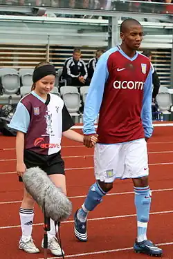 On 23 January 2007, Aston Villa completed the signing of Young for a fee of £8 million (rising to £9.65 million with add-ons).[13] At the time, this was the highest fee Aston Villa had ever paid for a player.[14] On 31 January 2007, he scored on his debut for Villa at St James' Park against Newcastle United, but Villa went on to lose 3–1.[15] Young started the 2007–08 season well, receiving several Man of the Match awards, culminating in a call-up to the England squad.[16]
