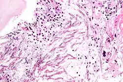 - ^ Rob, Filip; Školoudík, Lukáš; Chrobok, Viktor; Dědková, Jana; Kašparová, Petra; Podrazilová, Lucie (3 October 2022). "Invasive Aspergillus infection of middle ear in a patient treated with secukinumab, methotrexate, and corticosteroids for psoriasis and psoriatic arthritis". Journal of Dermatological Treatment (in Czech). 33 (7). Prague, Czech Republic: University Hospital Hradec Králové: 3063–3065. doi:10.1080/09546634.2022.2104442. PMID 35856655.