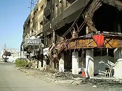 Musharraf ordered a crackdown on rioters and looters to "ensure safety and security."[60] The Pakistan Rangers announced shoot-on-sight orders against anyone inciting violence or arson, although attempts to avoid direct confrontation were maintained. On 28 December the riots escalated, especially in the Sindh Province, the homeground of Bhutto. Foreign outlets, trains, banks and vehicles were destroyed or burned and protesters took over the streets, chanting slogans and setting tires on fire in several cities. At least 47 people died in the riots.[61] Rioters destroyed 176 banks, 34 gasoline stations and hundreds of cars and shops.[61] 28 December was the first day of a general strike called by many groups, ranging from political parties to various professional groups.