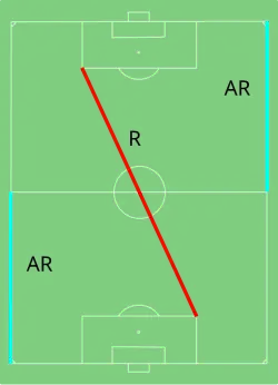 Law 6 of the Laws of the Game specifies that "two assistant referees may be appointed".[1] The assistant referees move along the touchlines, each covering their own half of the field of play.