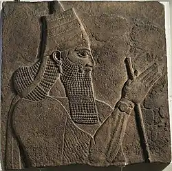 The kings also had religious and judicial duties. Kings were responsible for performing various rituals in support of the cult of Ashur and the Assyrian priesthood.[126] They were expected, together with the Assyrian people, to provide offerings to not only Ashur but also all the other gods. From the time of Ashur-resh-ishi I onward, the religious and cultic duties of the king were pushed somewhat into the background, though they were still prominently mentioned in accounts of building and restoring temples. Assyrian titles and epithets in inscriptions from then on generally emphasized the kings as powerful warriors.[120] Developing from their role in the Old Assyrian period, the Middle and Neo-Assyrian kings were the supreme judicial authority in the empire, though they generally appear to have been less concerned with their role as judges than their predecessors in the Old Assyrian period were.[127] The kings were expected to ensure the welfare and prosperity of the Assyria and its people, indicated by multiple inscriptions referring to the kings as "shepherds" (re’û).[120]