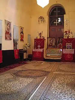 The Assyrian Church of the East does not make use of icons, and the interiors of its houses of worship are simple.[73] Iconography has been present in the Church of the East's history; opposition to religious images eventually became the norm due to the spread of Islam in the region, which forbade any type of depictions of saints and biblical prophets. Thus, the church was forced to get rid of her icons.[74][73]