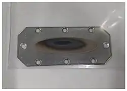 The structure of solid astatine is unknown.[20] As an analog of iodine it may have an orthorhombic crystalline structure composed of diatomic astatine molecules, and be a semiconductor (with a band gap of 0.7 eV).[21][22] Alternatively, if condensed astatine forms a metallic phase, as has been predicted, it may have a monatomic face-centered cubic structure; in this structure, it may well be a superconductor, like the similar high-pressure phase of iodine.[4] Metallic astatine is expected to have a density of 8.91–8.95 g/cm3.[1]