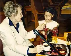 In 1967, the publisher Rabén & Sjögren established an annual literary prize, the Astrid Lindgren Prize, to mark her 60th birthday.[36] The prize—40,000 Swedish kronor—is awarded to a Swedish-language children's writer every year on Lindgren's birthday in November.[37] In 1995, she was awarded the Illis quorum gold medal by the Swedish government.[38] On her 90th birthday, she was pronounced International Swede of the Year 1997.[39] In its entry on Scandinavian fantasy, The Encyclopedia of Fantasy named Lindgren the foremost Swedish contributor to modern children's fantasy.[40] Its entry on Lindgren stated that "Her niche in children's fantasy remains both secure and exalted. Her stories and images can never be forgotten."[41]