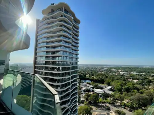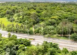 Road corridor of the Botanical Garden (left); on the right, the Jade Park towers are shown