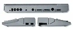 - Centronics printer port (DB25 female, officially compliant only with the most basic unidirectional standard with a single, "Busy" input line; unofficially offering some bidirectional capabilities)